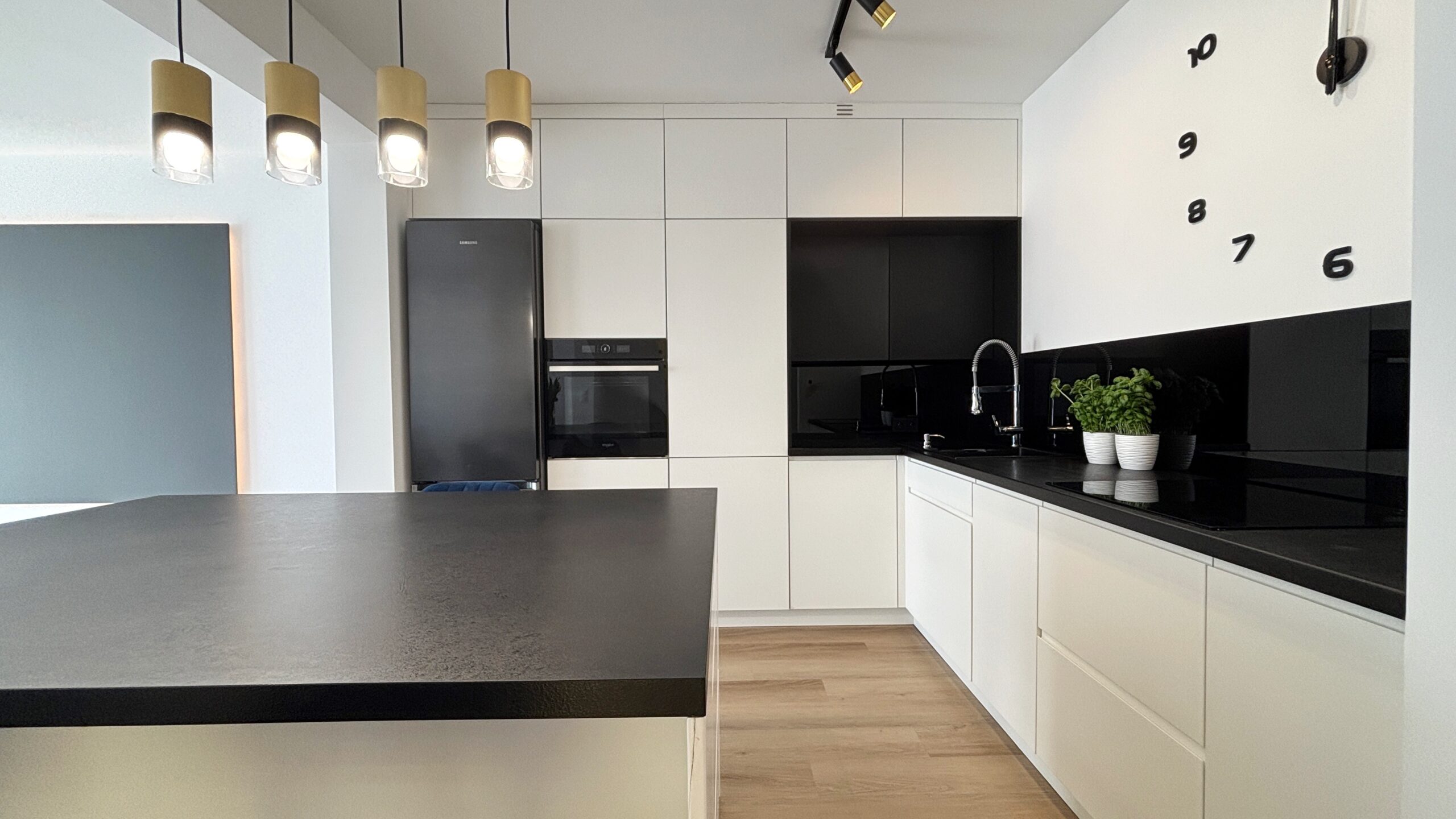 Nowoczesna kuchnia z wysokiej klasy sprzętem AGD – elegancka i funkcjonalna.