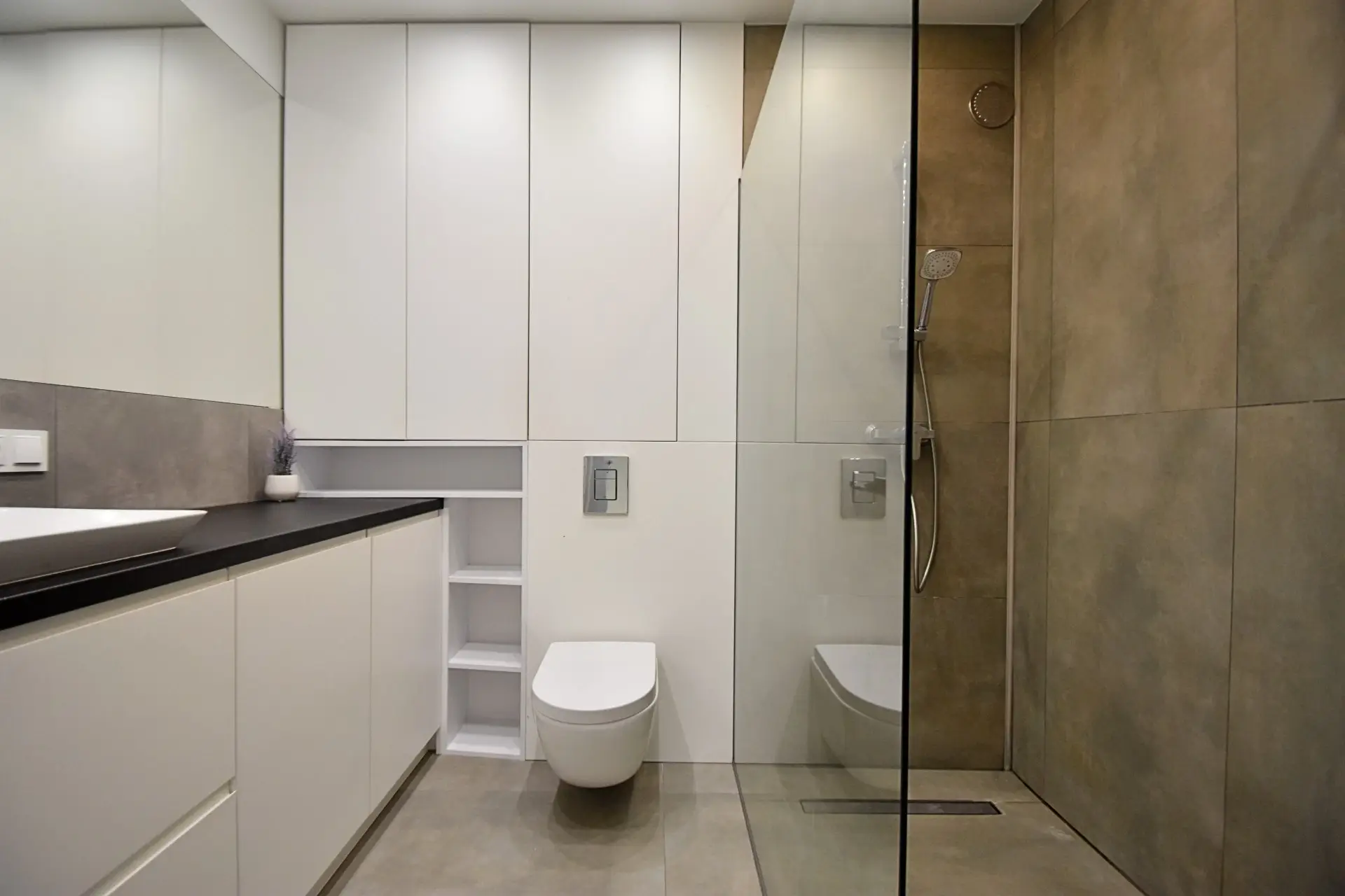 Łazienka z dużym prysznicem, zaprojektowana z myślą o wygodzie.