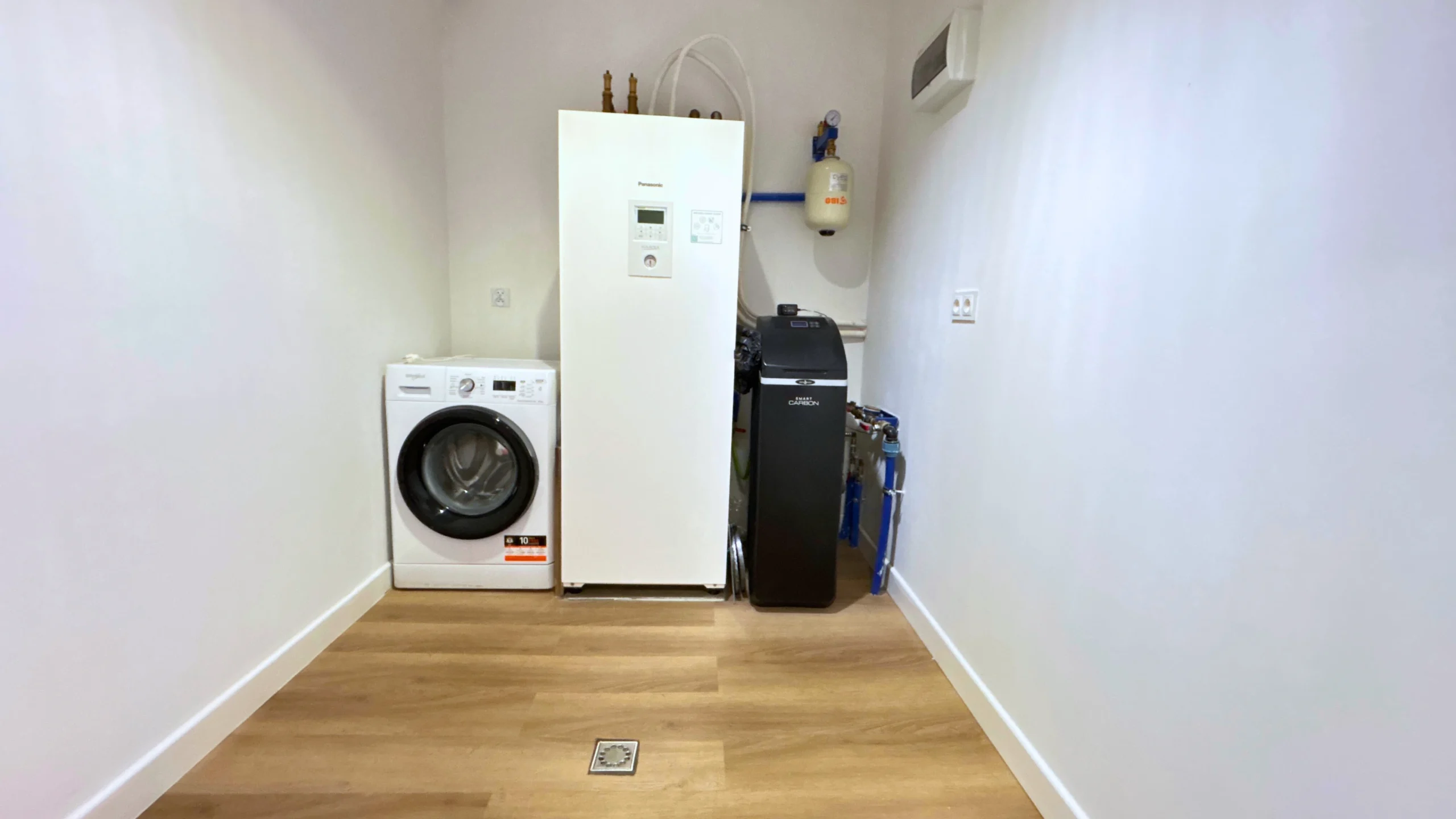 Łazienka oraz pomieszczenie gospodarcze, które świetnie sprawdzi się jako pralnia lub spiżarnia.